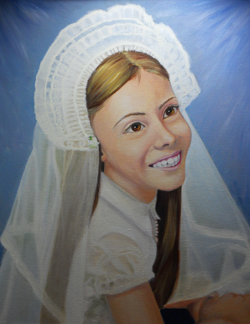 So, today being Michelle's birthday, I had to post some progress on her portrait. What I'm concentrating on lately is her clothing. But I've also noticed a distinct lack of an essential element when painting portraits of children. Green. Believe it or not, children tend to have more green tones in the lower third of their faces. Personally I think it's the translucent skin over (absolutely no fat and...) veins. Their faces are like the inside of adult wrists. Blue veins under skin tend to give a green hue. So, I will have to revisit that omission.